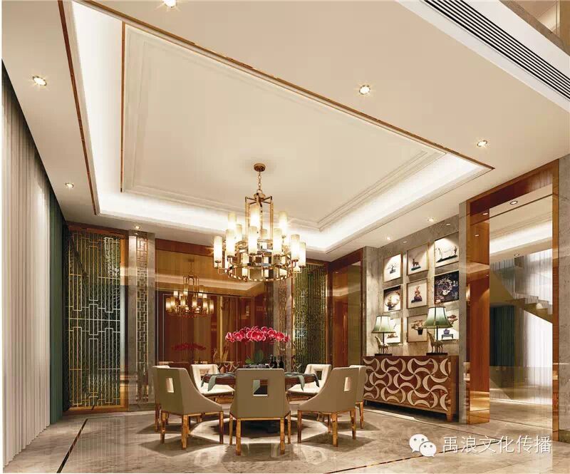 作品采用奢华为主、简约为辅的风格,力求宜居,不失韵味的住家空间。本样板房以原创定位——满足人性化的功能,凤凰栖梧桐,代表着御峰的专属与尊贵,凤凰是中国最为至尊的形象,她只选择梧桐而栖,也因此成为尊荣的象征。天骄御峰联排别墅A户型作为东莞豪宅中的典范,设计师力求打造一个如凤凰休憩地——唯一的归宿——梧桐(凤凰树),令仰慕者充满对御峰的购买欲望。